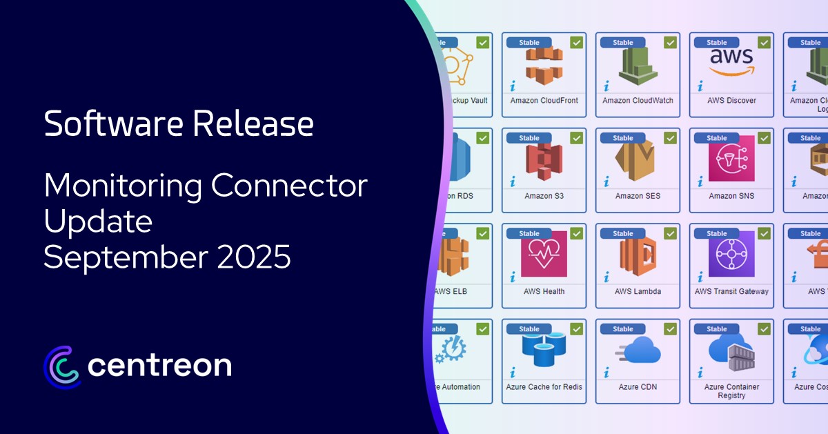 Every month, Centreon extends its monitoring connector catalog and implements new connectors, allowing you to connect your IT monitoring with always more ITOps tools.